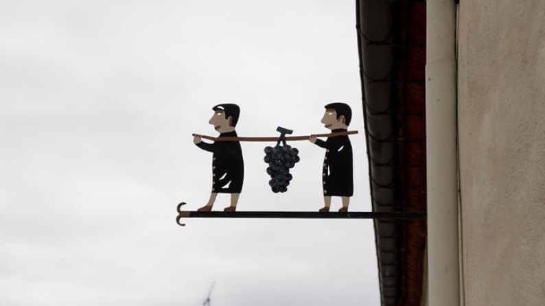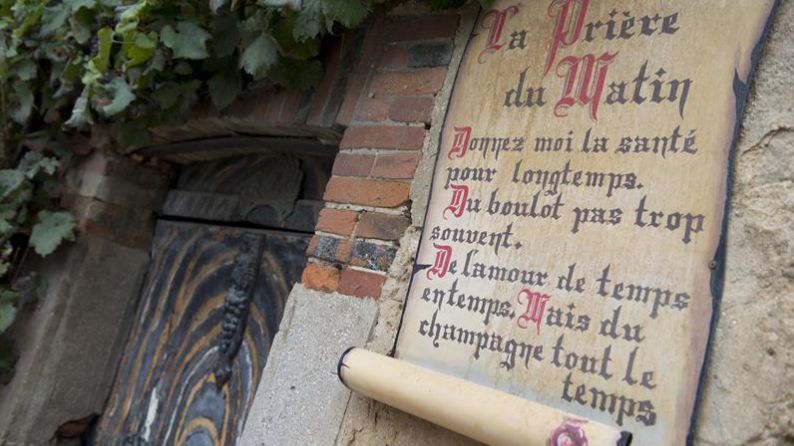 An old doorway in Hautvillers with the message: "Give me good health for a long time. Work not too often. Love from time to time. But champagne all the time"Although the population of Hautvillers is very small (just 840 inhabitants), the number of producers is, disproportionately high, as there are over fifty. You can visit this charming village on foot and check out one of its interesting features - the wrought-iron signs that hang over the doorways of many of the houses, denoting the trade of the occupants. Obviously, as we are in a region of wine producers , many of the houses feature a bunch of grapes, but we also saw a variety of other trades represented: hairdressers, bakers, musicians, etc.