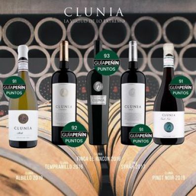 Bodegas Clunia cosecha unos magníficos resultados en la última edición de la Guía Peñín, entre los que destacan los 93 puntos conseguidos por Finca el Rincón de Clunia 2016, seguido por los 92 puntos de Clunia Tempranillo 2016 y los 91 puntos de Clunia Syrah 2017, Albillo 2019 y Pinot Noir 2019.
